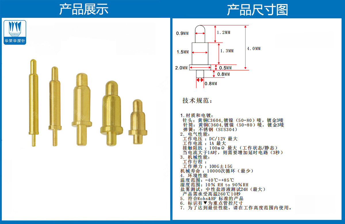 產(chǎn)品介紹:這個(gè)針通常用于智能手表,藍(lán)牙耳機(jī)上的有充電的功能,但是探針總體來說還是測(cè)試的