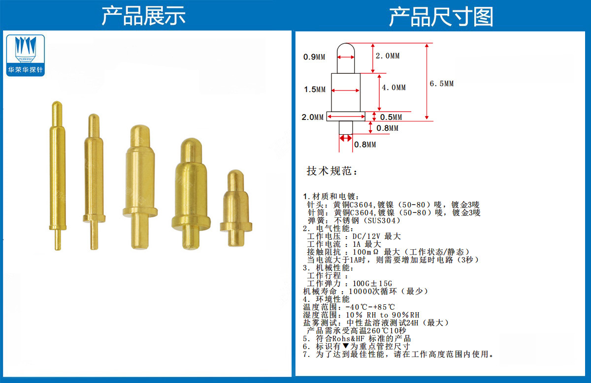 產品介紹:這個針通常用于智能手表,藍牙耳機上的有充電的功能,但是探針總體來說還是測試的