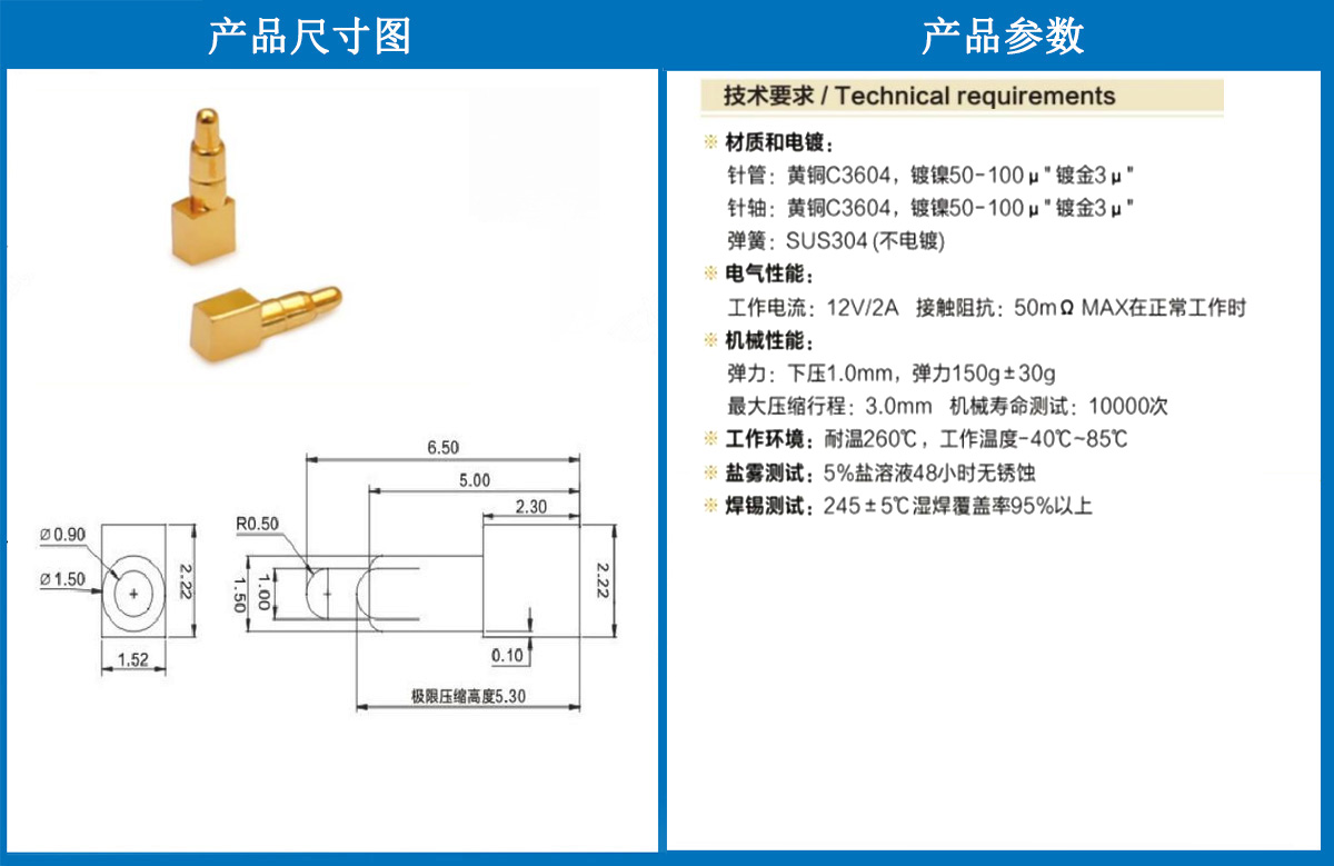 產(chǎn)品介紹:這個(gè)針通常用于智能手表,藍(lán)牙耳機(jī)上的有充電的功能,但是探針總體來(lái)說(shuō)還是測(cè)試的