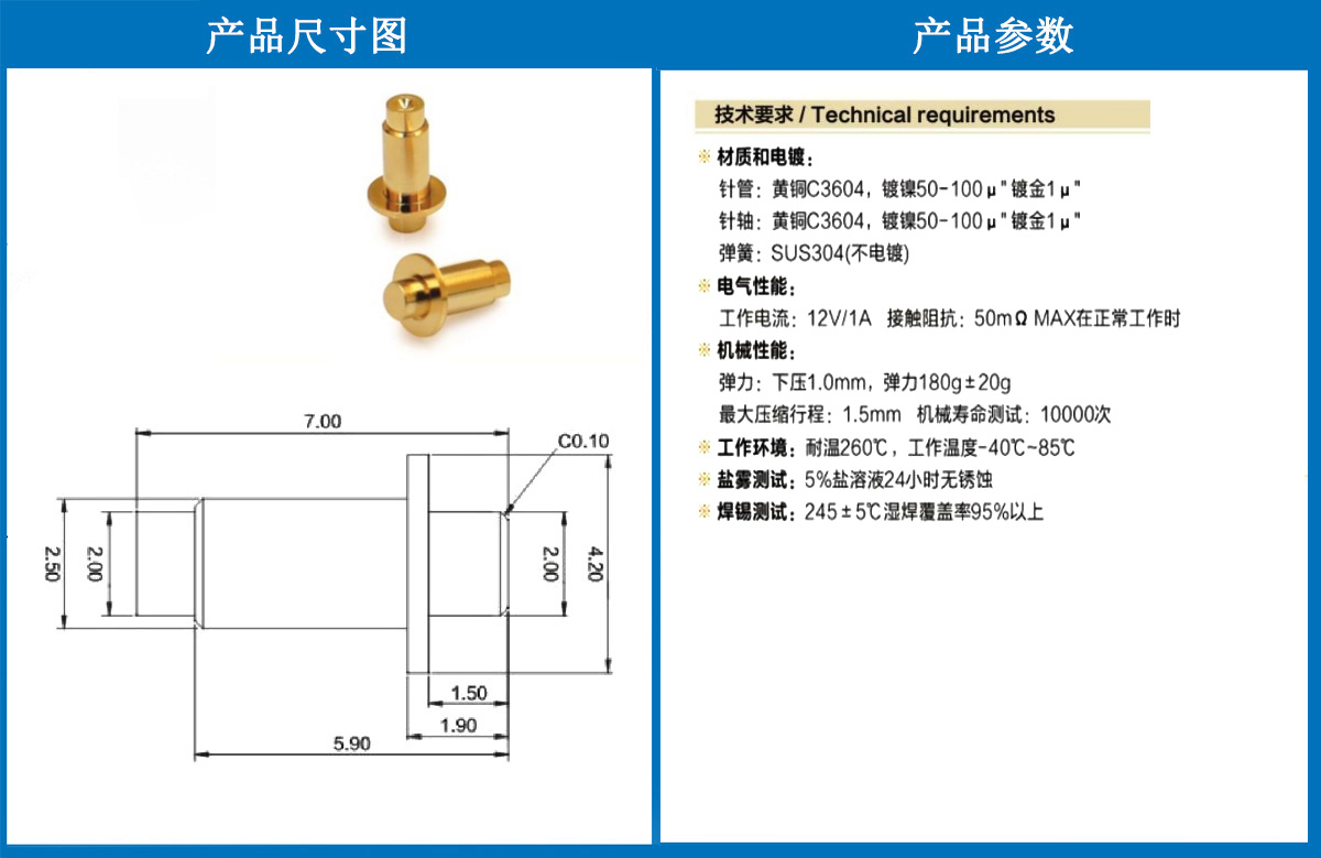 4.2*7.0電極針 當(dāng)前位置:首頁(yè) » POGO PIN充電彈簧頂針 » 電極針
