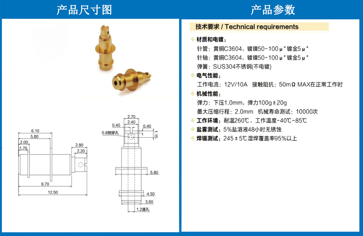 產(chǎn)品型號:5.8*12.5彈針 所屬分類:電流探針 產(chǎn)品優(yōu)勢:產(chǎn)品定位精度高、產(chǎn)品過載穩(wěn)定、產(chǎn)品測試誤判率低 主要應用于:智能產(chǎn)品、藍牙耳機、藍牙手環(huán) 產(chǎn)品介紹:這個針通常用于智能手表,藍牙耳機上的有充電的功能,但是探針總體來說還是測試的 熱線電話:400-183-6682